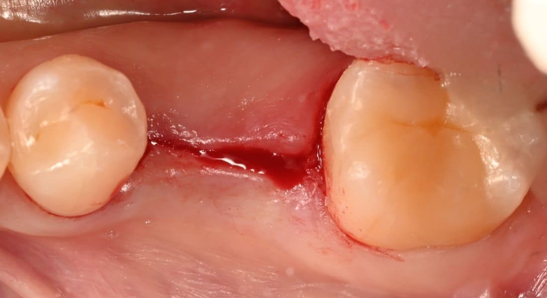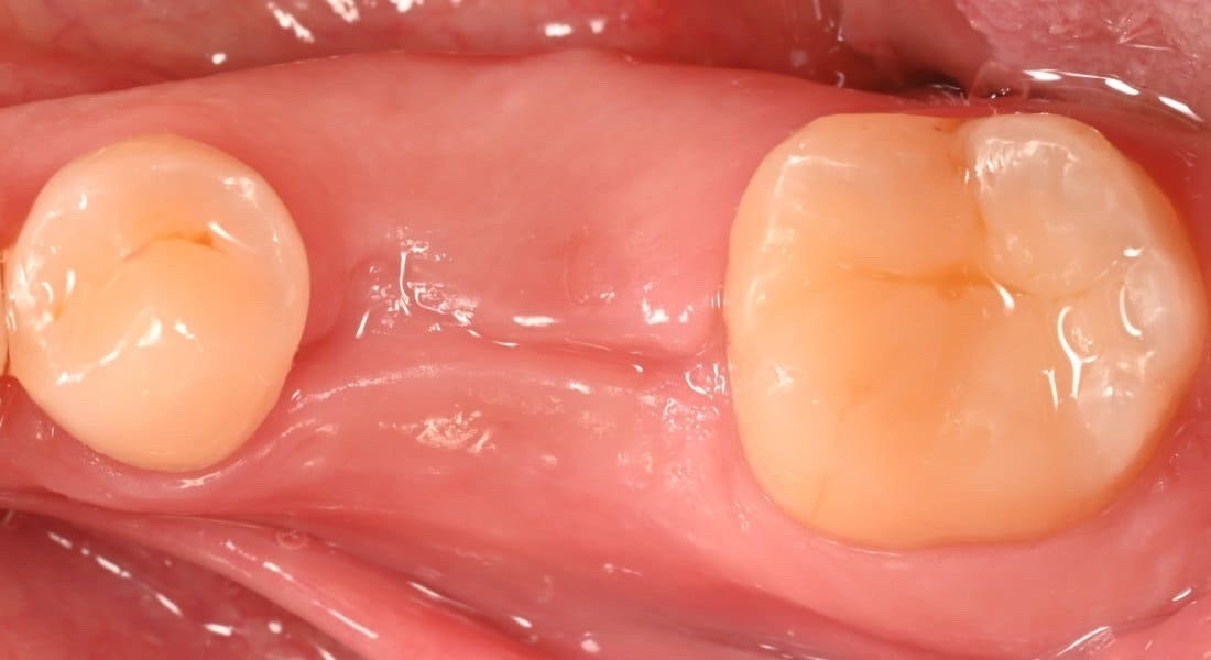 3 oy oldin bemorning tishi yallig‘lanish va saqlab qolishning imkoni bo‘lmagani sababli olib tashlangan. Shu vaqt davomida lunkada to‘liq bitish va yetarli suyak shakllanishi kuzatildi.